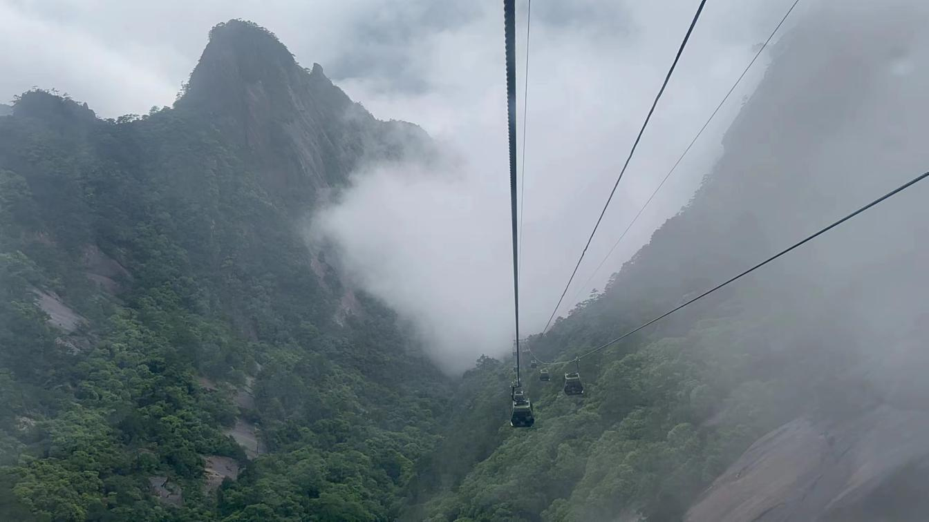 我們走過百階樓梯,看周圍奇石屹立,登上海拔1860米的光明頂,看遠處云海翻騰,領會徐霞客詩中的美好。