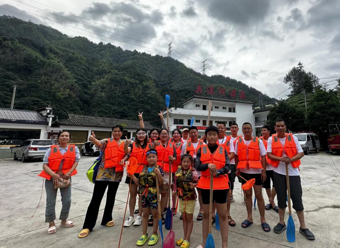 一只小小的橡皮艇,順水漂下,時而驚險刺激,時而碧波潺潺,兩岸是青山綠水,鳥語花香,身上是清涼透徹的溪水,將工作的疲憊與生活的煩悶一消而散,暢快淋漓。漂流的同時大家還準備了水槍、水瓢等打水仗的工具,大家在水上盡情的釋放壓力,感受最純粹的快樂。